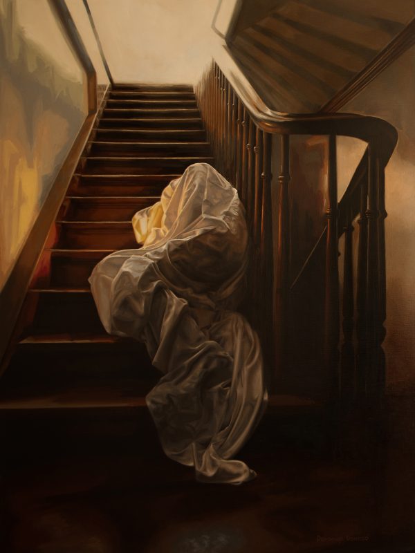 La relación de toda persona con la realidad tiene un límite, existe cierta ajenidad con lo exterior que impide su total aprehensión. El velo simboliza las fantasías del mundo interno, que tiñen nuestra percepción de la realidad. Si bien nuestra relación con lo real estará condicionada por el lugar y la posición desde los cuales se observa, es posible tomar distancia. Y ello es el propósito de esta exposición.